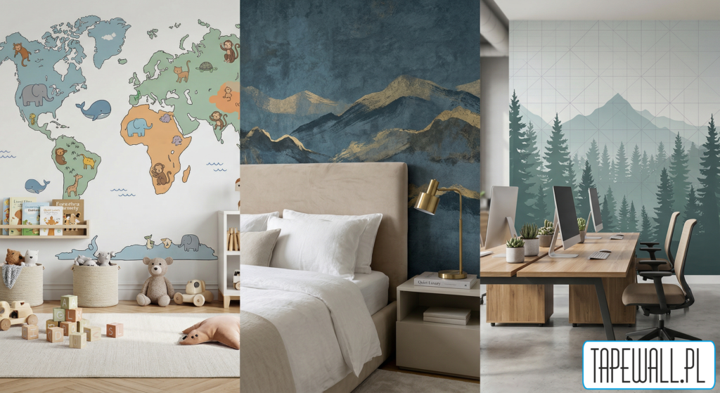 - Technologia: Tutaj nie ma miejsca na zwykły papier. Liczą się tapety obiektowe z atestami trudnopalności i odpornością na uderzenia mechaniczne.